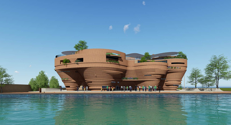 Công trình có cảm hứng từ những khối bàn xoay vuốt gốm. Có những mặt cong đa diện, chuyển động mềm mại và tự do. Có cả hình ảnh lò bầu cổ của người dân Bát Tràng xưa.