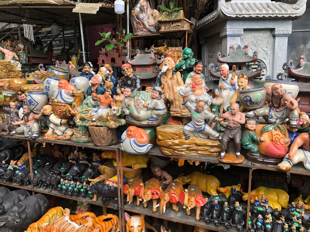 Phong phú với hàng triệu mặt hàng, chợ gốm sứ quy tụ từ con thú đất nung nhỏ xíu cho đến chiếc lọ lục bình có giá chục triệu. Không chỉ đến mua bán, du khách còn được người dân làng cổ Bát Tràng giới thiệu công nghệ, tinh hoa của sản phẩm gốm truyền thống.